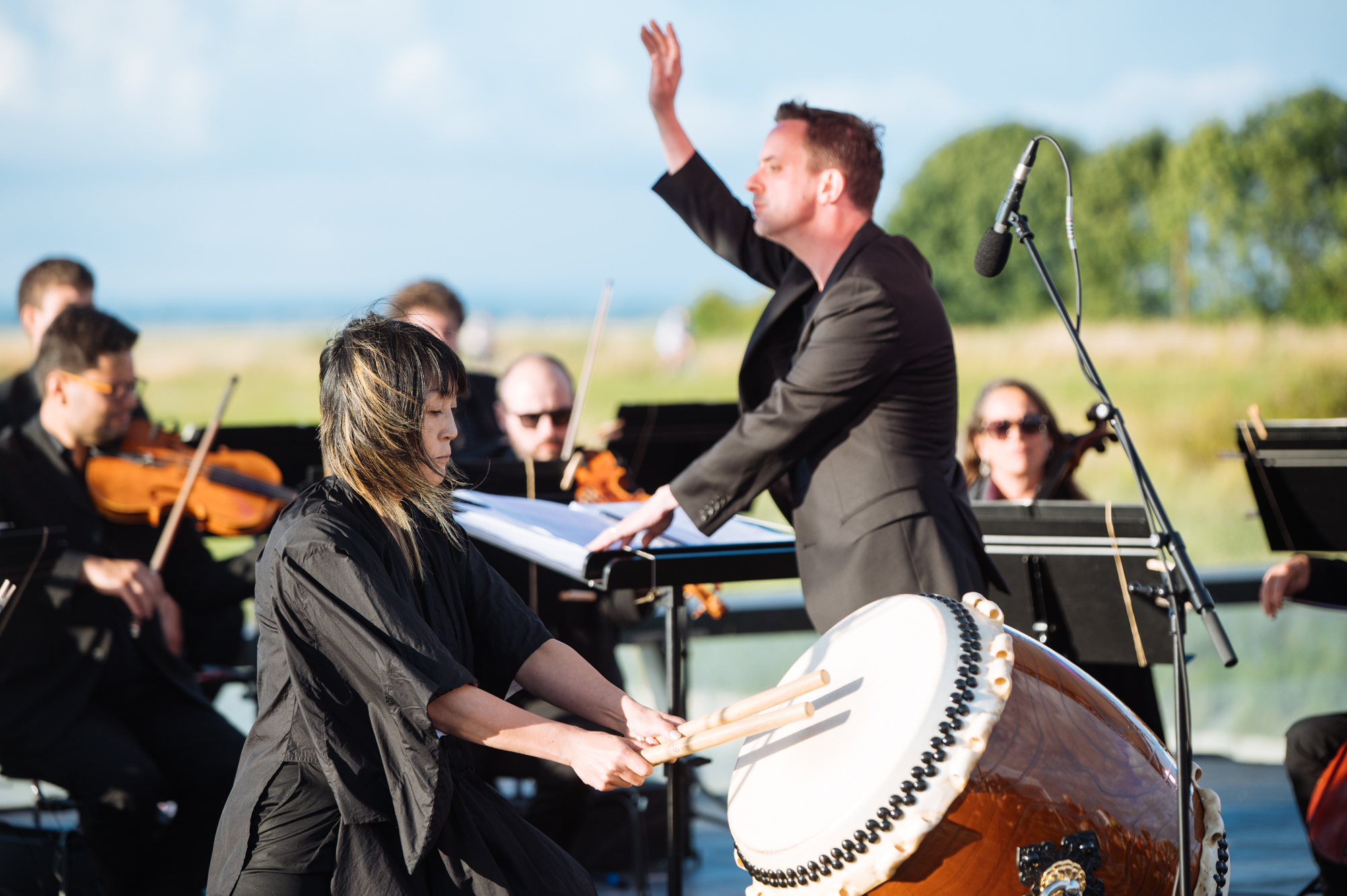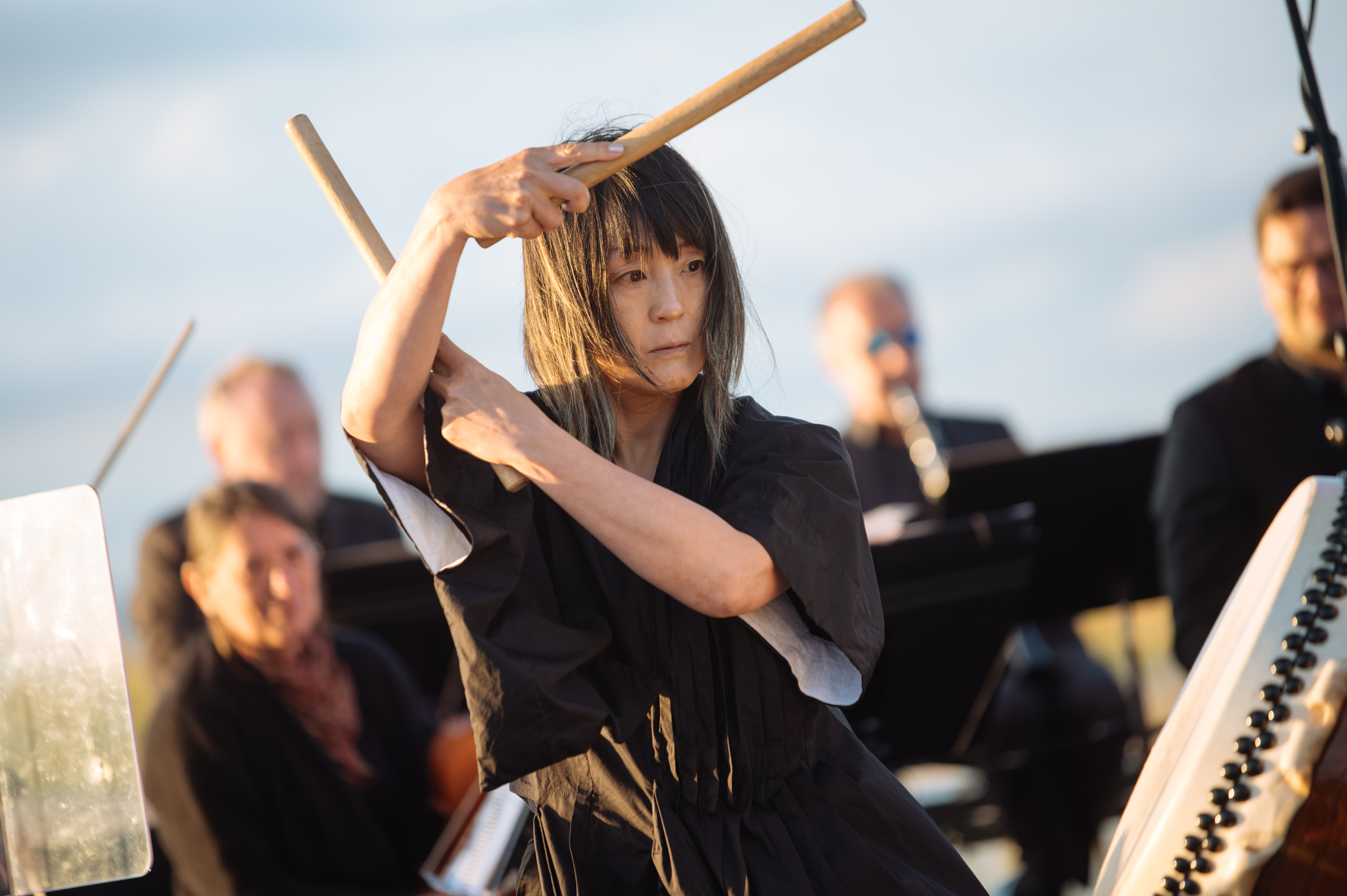 Dialogue between the taiko, a saxophone and a chamber orchestra.